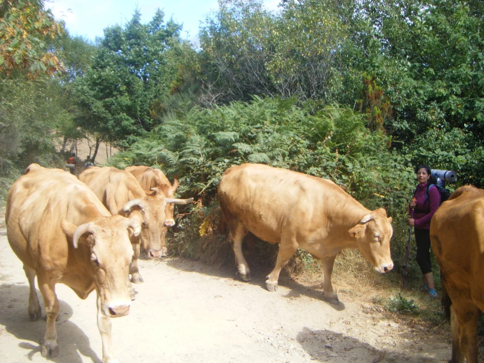 Abrigados por la vegetación de la montaña, ascendemos desde los 1300 metros hasta los 1370 Alto de San Roque (el punto más elevado del Camino Francés en Galicia) en las inmediaciones del Teso da Cruz y el monte Area.