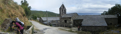 Descendemos y hacemos una parada para llenar las cantimploras en Padornelo que es el reino de la piedra y las losas de pizarra.